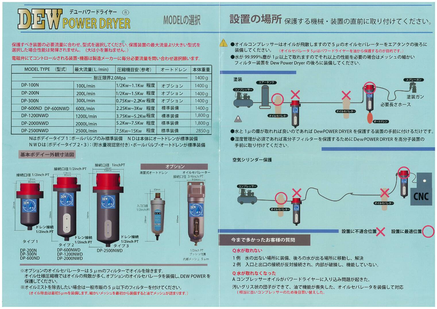 - ●露点改善、圧力下(-3度)排出空気は乾燥のエアー。